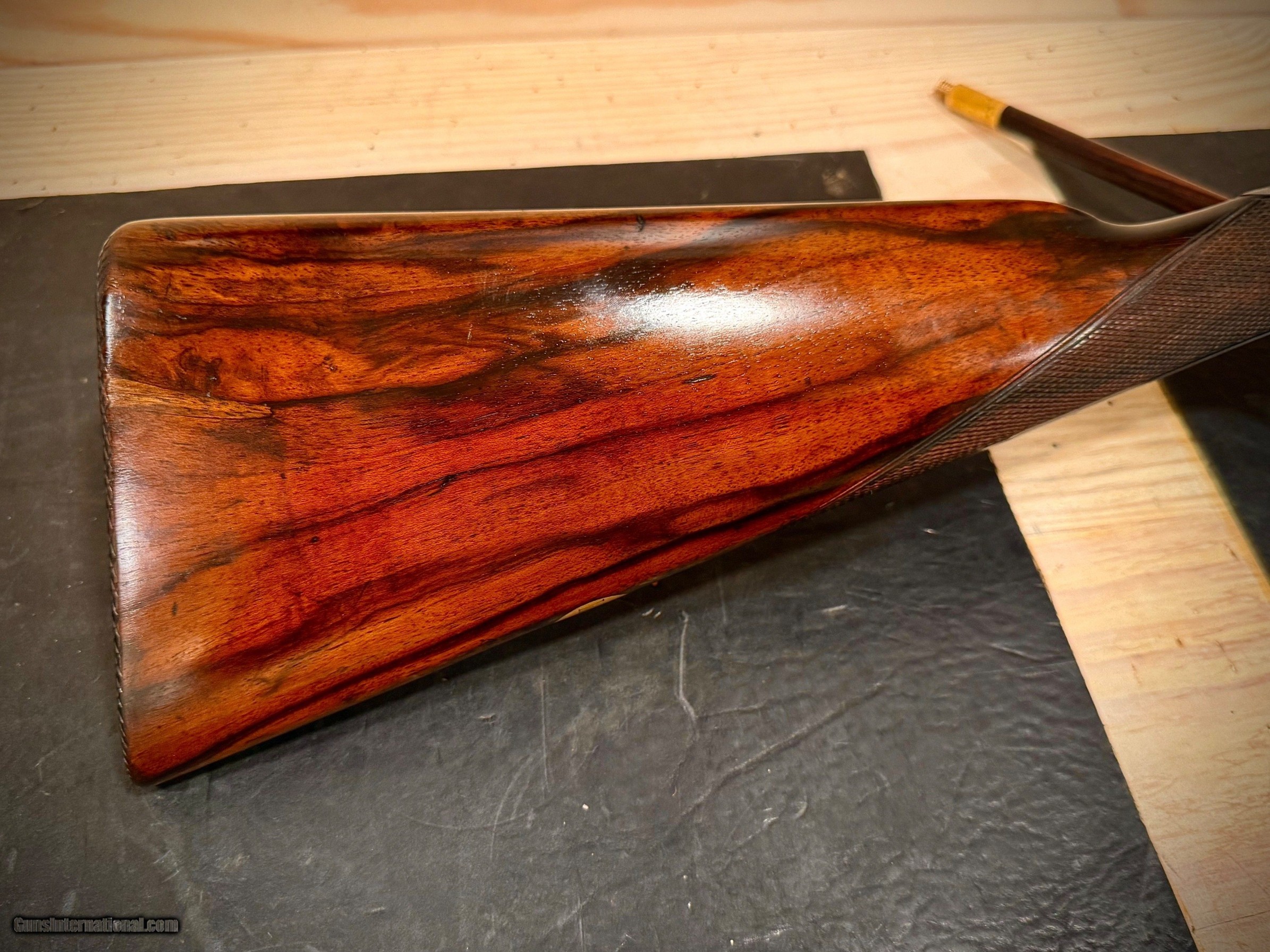 Looks to be a small repair on the left hand bottom side of the receiver next to the trigger well. I have reason to believe this was inspected by or repaired by Purdey due to the letter and providence. Despite being a 150+ year old antique, this shotgun is mechanically and functionally perfect and ready for the next 150 years of shooting. A fine example of the master craftsmanship in UK gun-making from arguably the world’s best shotgun maker and premier member of the “Big 3” of Britain’s most famous craftsmen Purdey, Holland & Holland, and Boss & Co. With the growing popularity of wildfowling using classic British shotguns, and a surge in enthusiasm for hammer guns, this is a great combination of beauty and function without absolutely breaking the bank. Affordable luxury; ready for your next century of shooting.